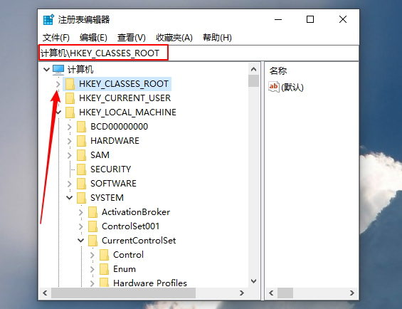 3、进入注册表后,点击展开“HKEY_CLASSES_ROOT”文件夹。