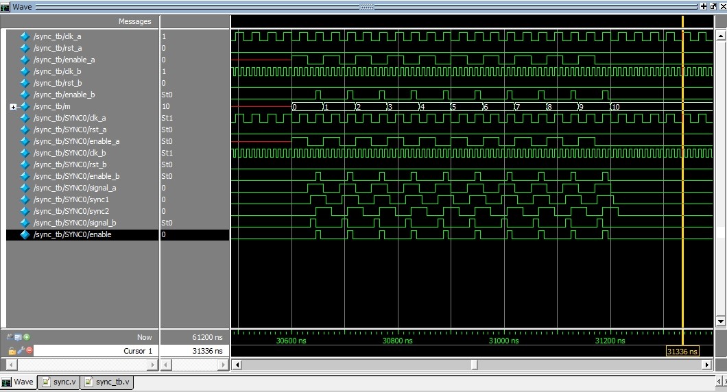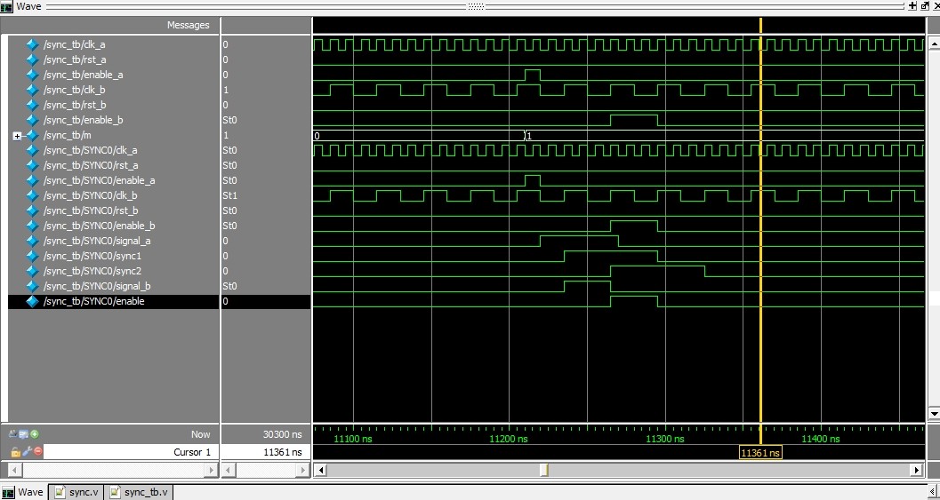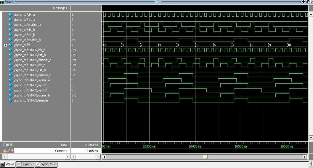 还是上面的sync.v,我们修改sync_tb.v中enable_a产生之后等待的时间,就会发现有丢失的情况发生。