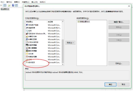 4. 特殊的如果在第 2 步找不到 Microsoft Word 97 - 2003 文档 部分,那么在运行那儿输入 mmc -32 然后在工具栏中选择 文件 然后选择 添加删除管理单元 ,然后单机 组件服务 将其添加,点击确定。