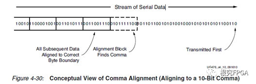 接收器在输入数据流中扫描搜寻特定的比特序列(comma),如果找到序列,解串器调整字符边界以匹配检测到的Comma字符序列。