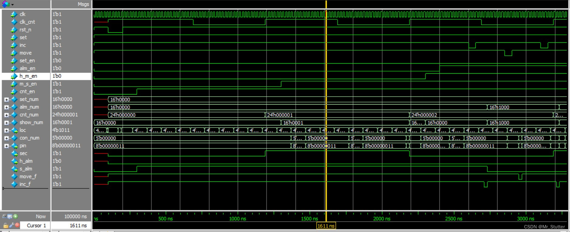 #100 set_en = 1;//校时指针0010