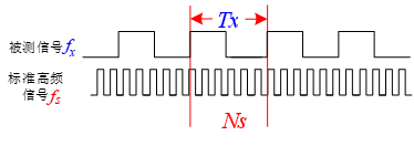在待测信号的一个周期Tx内,记录频率为fs的标准信号周期数Ns。如图 3。