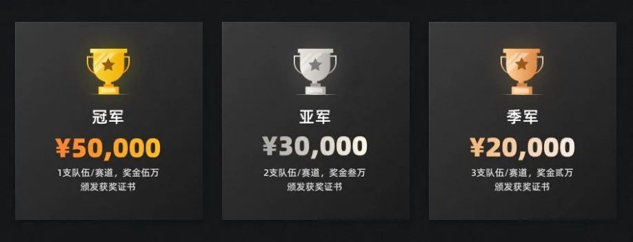 本届创新技术大赛共设总奖金池 34 万 元人民币,每个赛道均设立奖金池 17 万 元,以决赛答辩名次决出冠军队伍 1 支,亚军队伍 2 支,季军队伍 3 支,并颁发获奖证书!