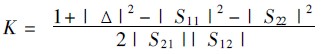 稳定系数K能快速给出稳定性判别依据,当K》1,|Δ|《1时,LNA将会无条件稳定。那么由公式(5)和(6)可知,若反向增益S12减小,那么K值将会增大,LNA将会增加稳定性。从图2(b)可以看到,由电感Lg2和MOS管的电容Cgd2组成一个低电阻通路使得从输出端反馈回来的信号流向接地端,从而降低了反向增益S12,提高了LNA的稳定度。