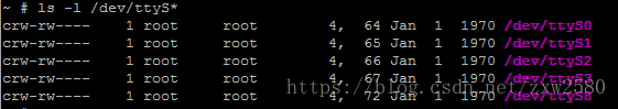 # ls -l /dev/ttyS*
