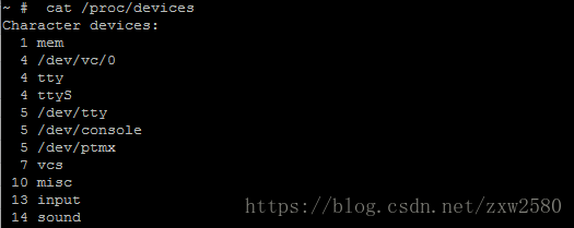 # cat /proc/devices