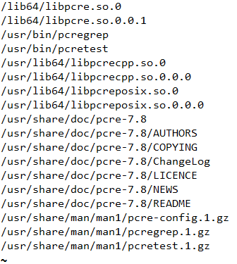 这里安装了pcre-7.8-6.el6.x86_64,那就要看看这个软件里有没有关于pcre-config相关的文件