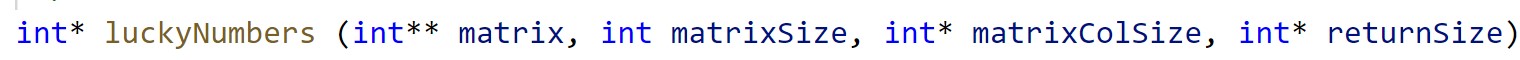 int* luckyNumbers (int** matrix, int matrixSize, int* matrixColSize, int* returnSize){