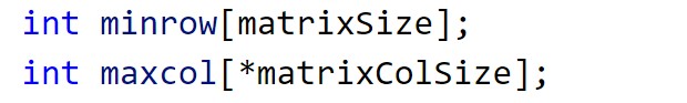 定义一个行数组minrow[matrixSize] 和一个列数组maxcol[*matrixColSize]。