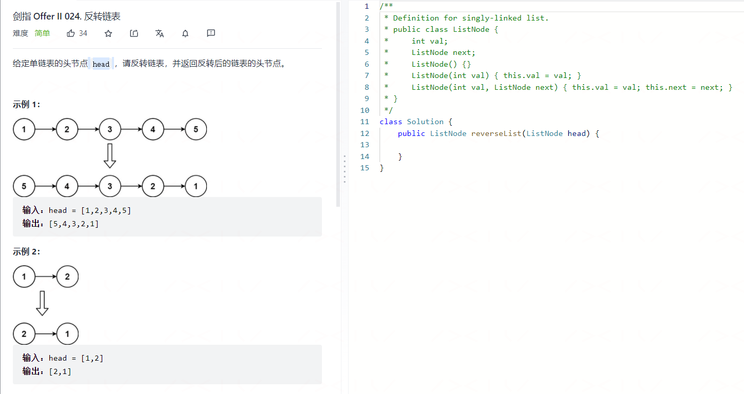 剑指 Offer II 反转链表,也是同事遇到过的面试题,题目如下