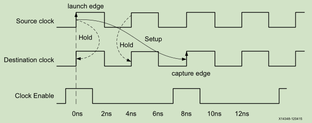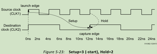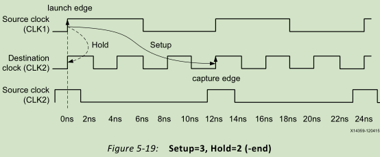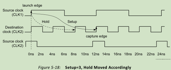 分别表示以目的时钟为基准,往前数,第5个沿作为捕获沿;以源时钟的发射沿为基准,向前数4个沿作为hold check edge。时序检查如图所示: