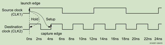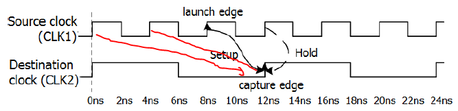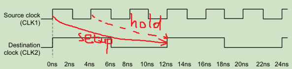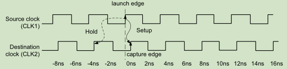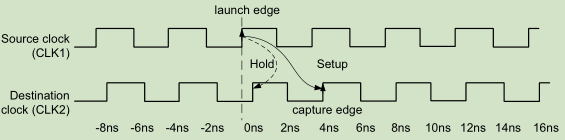 对于发送和捕获的两时钟是同周期,但存在相移。有两种情况:clk2较clk1,正相移;clk2较clk1,负相移。