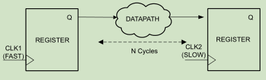 set_multicycle_path N -setup -start -from [get_clocks CLK1] -to [get_clocks CLK2]