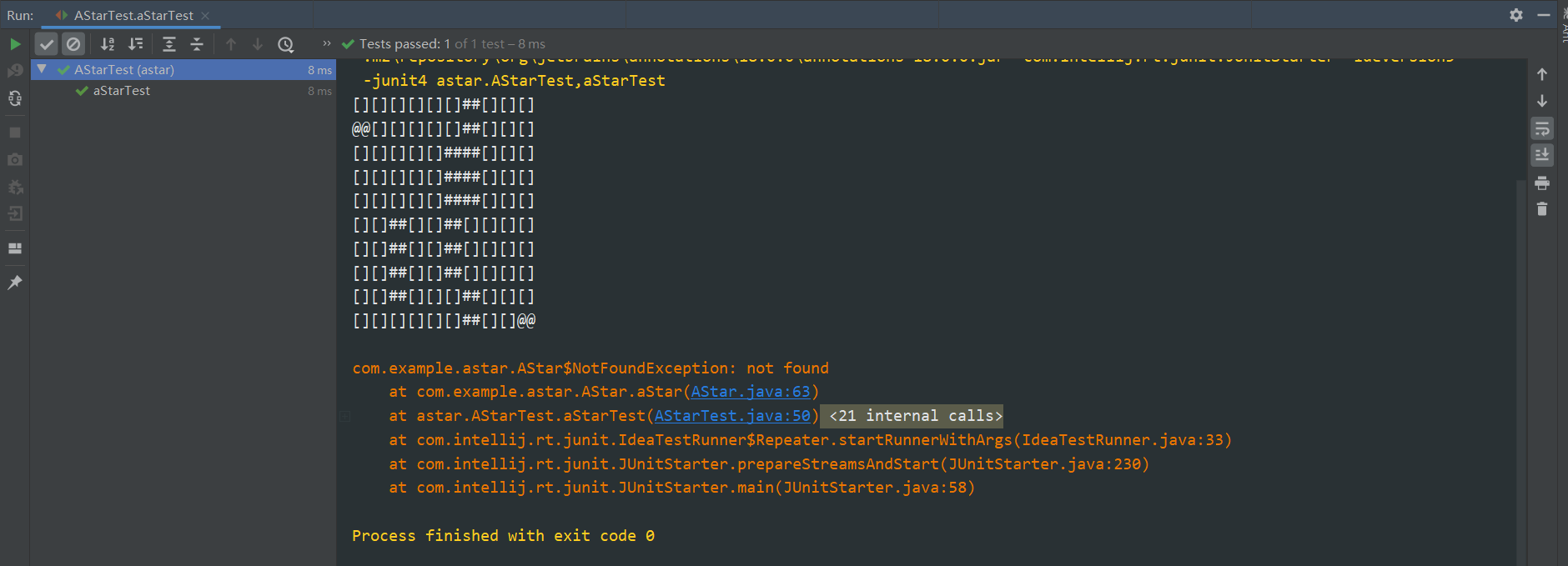 public void aStar(int[][] map) throws NotFoundException{