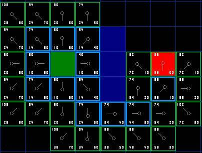 如上图所示, 除了起始方块, 每一个曾经或者现在还在 "开启列表" 里的方块, 它都有一个 "父方块", 通过 "父方块" 可以索引到最初的 "起始方块", 这就是路径.