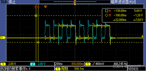 橘色和蓝色同步输出,误差仅4~5ns可忽略