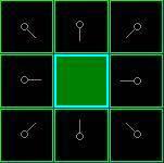 5. 检查它所有相邻并且可以到达 (障碍物和 "关闭列表" 的方格都不考虑) 的方格. 如果这些方格还不在 "开启列表" 里的话, 将它们加入 "开启列表", 计算这些方格的 G, H 和 F 值各是多少, 并设置它们的 "父方格" 为 C.