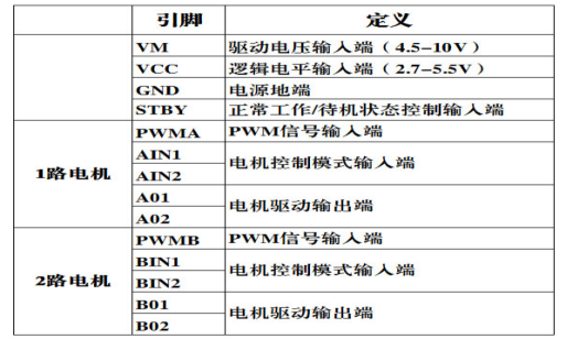 只要电源线接好,然后PWMA线接PWM信号引脚AIN1,AIN2普通的IO口电平控制正反转就行了。