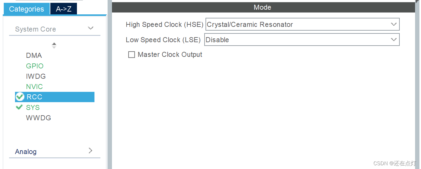 开启RCC的HSE