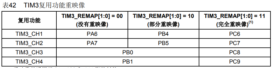 部分重映射:外设的所有默认引脚的部分引脚修改位置。