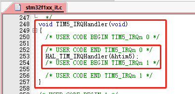 打开 stm32f1xx_it.c 中断服务函数文件,找到 TIM5 中断的服务函数 TIM5_IRQHandler()