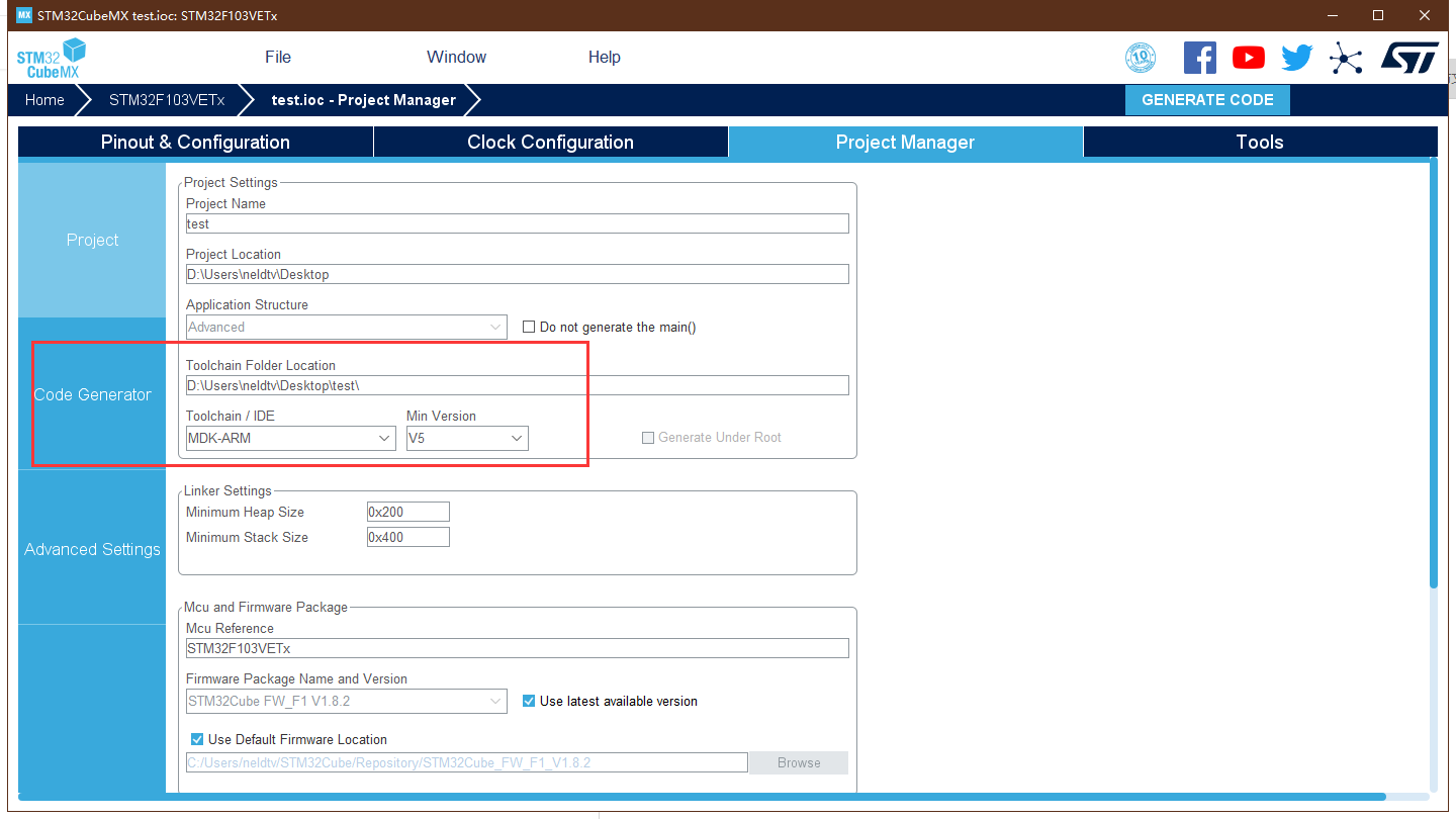 选择应用的 IDE 开发环境 MDK-ARM V5