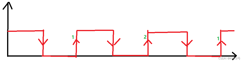 预分频是设置记录到几次上升沿才触发一次捕获。它是由TIMx_CCMR1寄存器的ICPS位来配置的。例如,如果我们设置每2次上升沿触发1次捕获,那么下图可以触发一次捕获