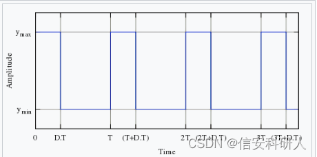 调制出的脉冲波为方波,T为周期,D为一个工作循环,低值ymin,高值ymax,波的平均值计算公式为: