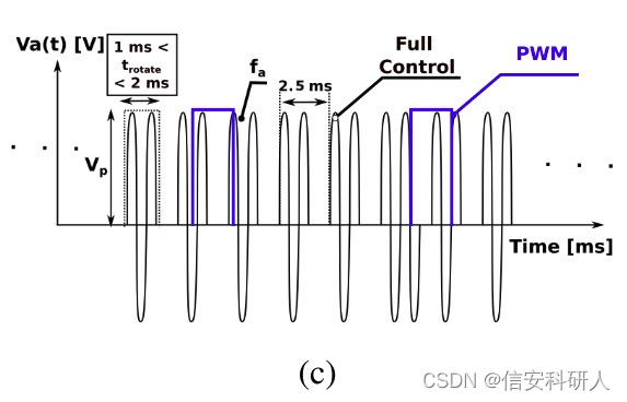 完全控制波形利用了原始PWM的低占空比特性,并且非常频繁地注入错误的致动数据以在不需要同步的情况下控制受害致动器。