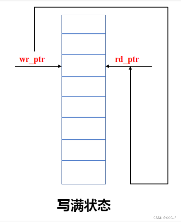 3. 当写指针再次追上同步后的读指针时,即为写满。