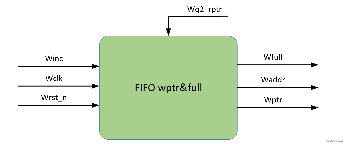 写控制端口主要用于是否可以写入数据,写指针与写满的顶层模块图如下图