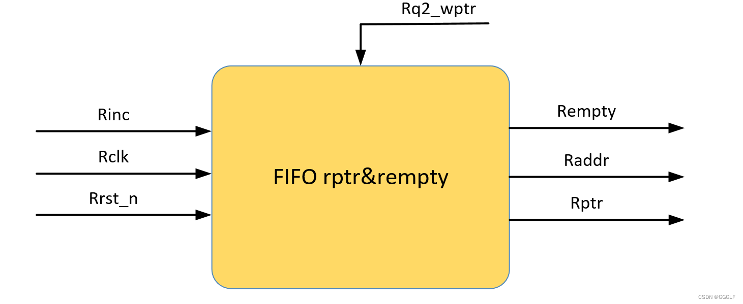 读控制端口主要用于是否可以读取数据,读指针与读空的顶层模块图如下图