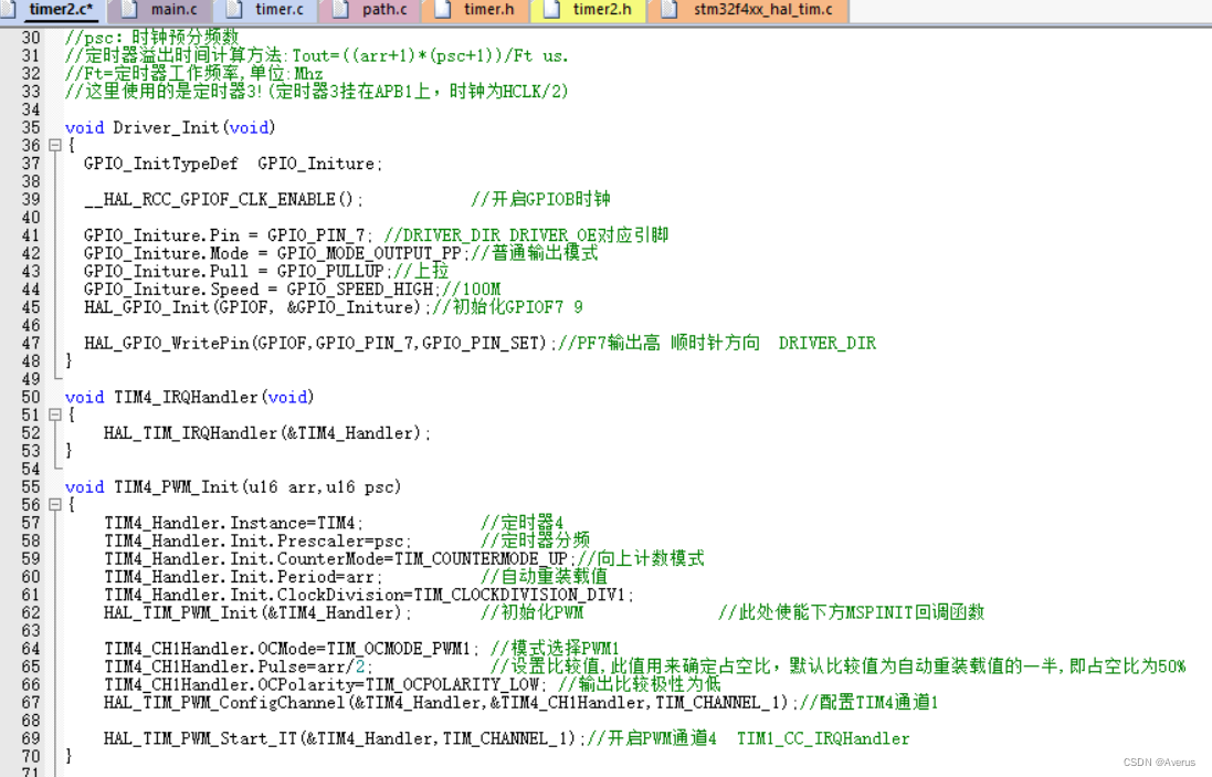 第一个Driverinit,初始化了PF7,PF9作为编码器的DIR+,和DIR-来控制方向。具体可参见备注。