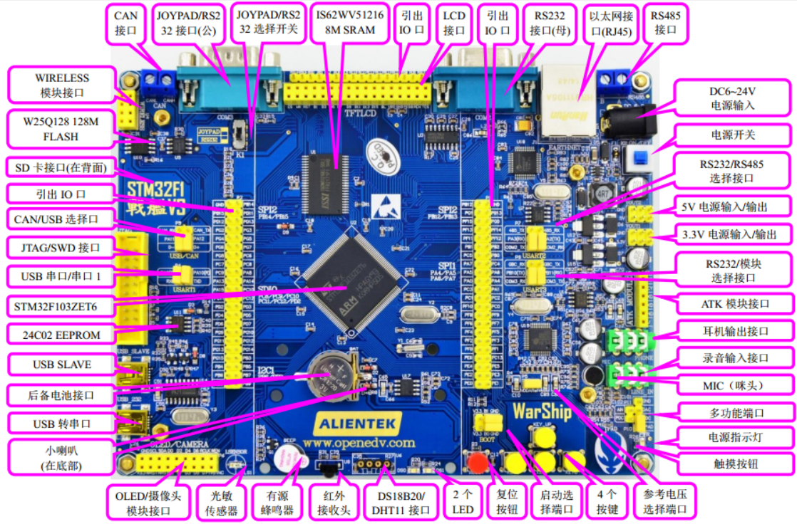 ALIENTEK战舰STM32F103,资源十分丰富,并把STM32F103的内部资源发挥到了极致,基本所有STM32F103的内部资源,都可以在此开发板上验证,同时扩充丰富的接口和功能模块,整个开发板显得十分大气。