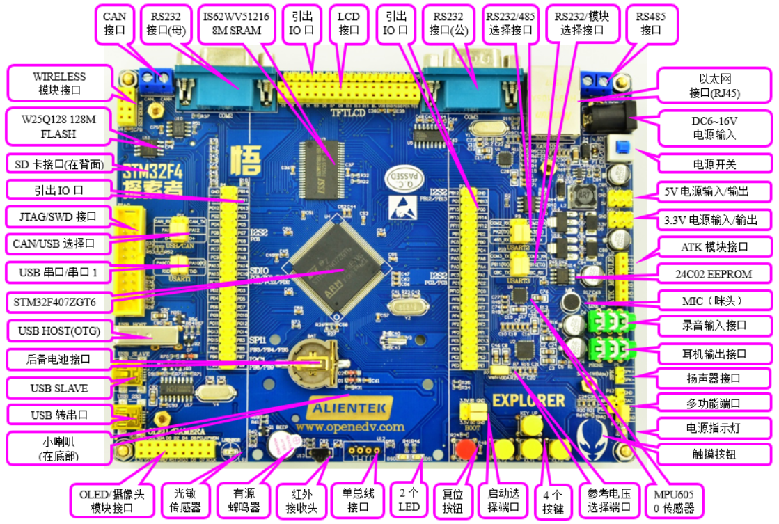 - CPU:STM32F407ZGT6,LQFP144,FLASH:1024K,SRAM:192K;