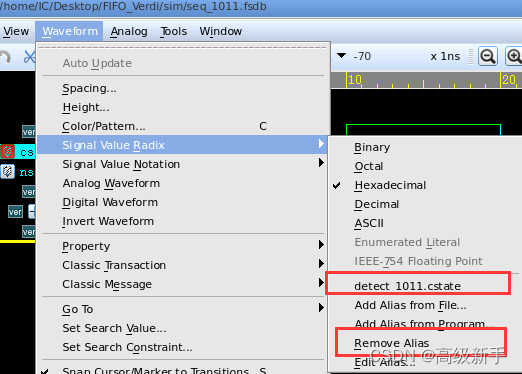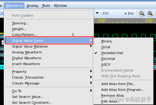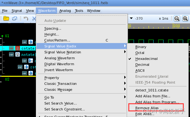 可以通过移除关联从状态机名字恢复到原来的进制显示: