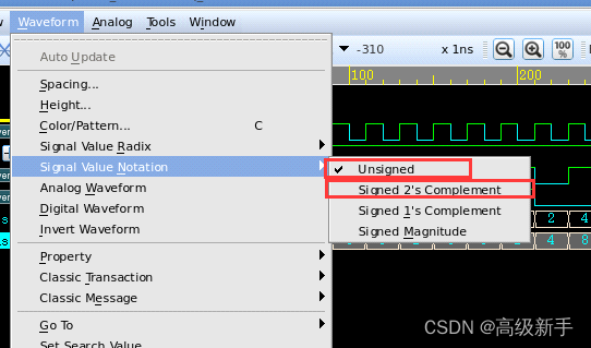 ①选择需要查看的信号(可以通过shift键来选择多个信号)