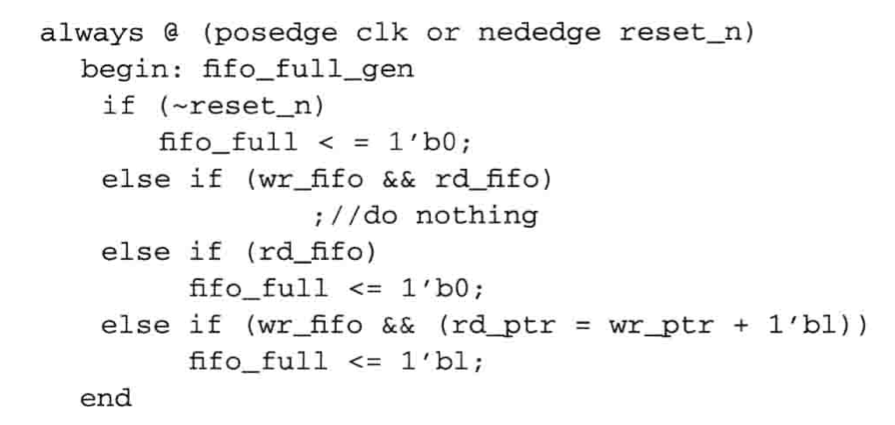 空操作:在执行读的操作时,两个指针在下个时钟保持相等,则fifo 判断为空,发出fifo_empty信号。