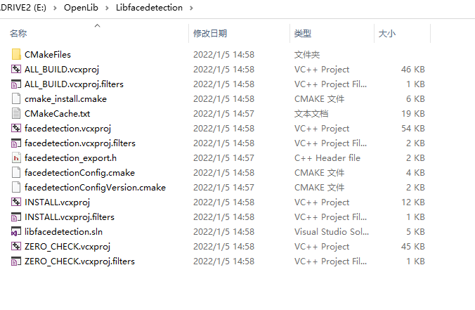 选择libfacedetection.sln,build ALL_BUILD,以获得Lib文件,见下图: