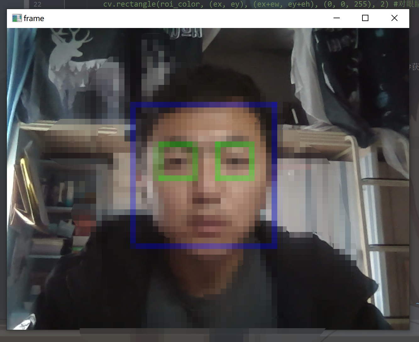 cv.rectangle(roi_color, (ex, ey), (ex+ew, ey+eh), (0, 0, 255), 2) #对眼睛进行框取