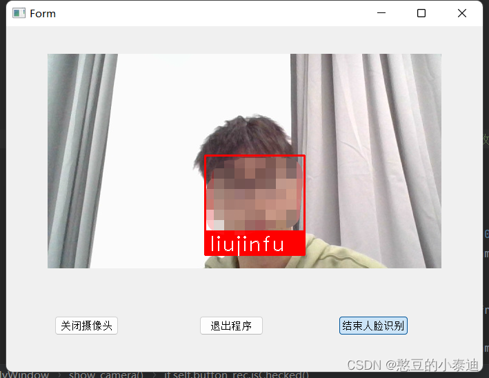 以上就是含糊斑马最近收集整理的关于PyQt5学习笔记--基于face_recognition实现实时视频流人脸检测与识别1--基于Qt Designer设计ui窗口2--基于face_recognition实现人脸3--主函数4--结果展示5--参考的全部内容,更多相关PyQt5学习笔记--基于face_recognition实现实时视频流人脸检测与识别1--基于Qt内容请搜索靠谱客的其他文章。