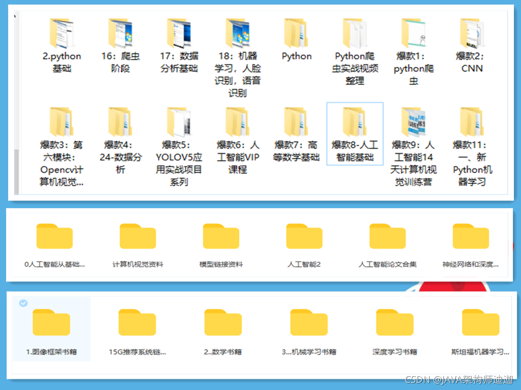 小编吐血整理了有关Python人工智能的资料,有图像处理opencv自然语言处理、机器学习、数学基础等资源库,还有200G人工智能大礼包内含:Pytorch、TensorFlow实战框架视频、图像识别、OpenCV、计算机视觉、深度学习与神经网络等视频、代码、PPT以及人工智能书籍,想学习人工智能或者转行到高薪资行业的,大学生也非常实用,你想要的的都有~
