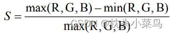 OpenCV 用一个公式来计算饱和度,该公式基于 BGR 组件的最小值和最大值: