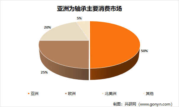 亚洲为主要消费市场,以中国、日本为代表的亚洲地区,占据了全球轴承消费的半壁江山,成为了全球最大的轴承消费市场。欧洲和北美地区紧跟随后,分别为25%和20%。