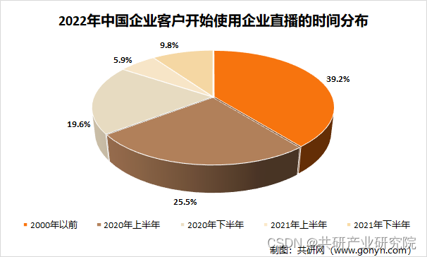 企业直播的企业客户之中,大多数企业客户早在2020年以前就已经开始使用企业直播服务至今,此部分企业客户占总体的比例高达39.2%;2020年受疫情的影响,2020年加入的企业客户累计占目前企业客户总体的45.1%;2021年加入的企业客户累计占目前企业客户总体的15.7%。