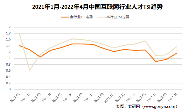 2021年1月-2022年4月互联网行业人才TSI趋势