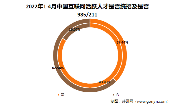 2022年1-4月中国互联网活跃人才是否统招及是否985/211