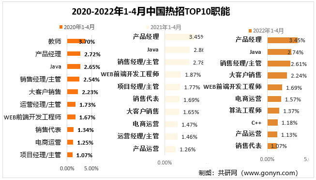 2020-2022年1-4月中国热招TOP10职能