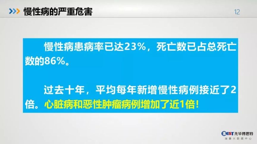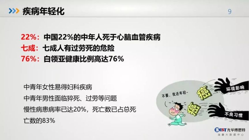 摘要:生老病死是我们每个人的坎,如今现代社会,文明程度较高,人们不再追求虚无缥缈的“长生不死”。如何能在有限的生命中,过得更好、更健康,才是打开生命的正确姿势。从这份报告中那些触目惊心的数字里不难看出我国国民健康情况非常严峻。虽然这些年经济发展很快,但是国民身体素质与健康方面还有非常长的一段路要走。