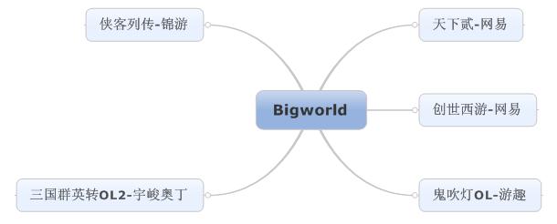 | Bigworld | 网易:《天下贰 》、《创世西游》; 游趣:《鬼吹灯OL》; 宇峻奥汀:《三国群英传OL2》; 锦游:《侠客列传》。 暴雪: 《魔兽世界》 |